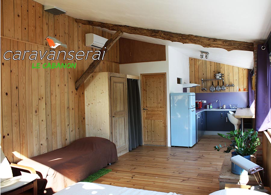 le Cabanon est réalisé avec le charme de l'ancien. Gîte pour 3 personnes, exposition Est et Nord, avec vue exceptionnelle sur la vieille bastide et l'ancien aqueduc en pierres.
