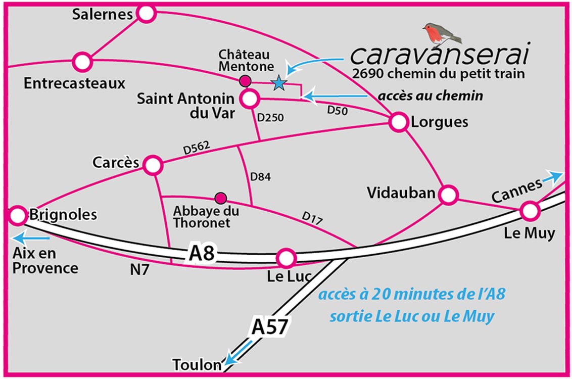 Nous sommes situés sur la EV8 (eurovélo8), voie cyclable Var Provence entre les bornes 63 et 64.