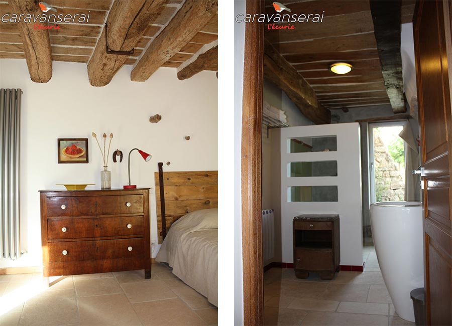L'écurie a été restaurée dans les règles de l'art (poutres, plafond à la provençale...), avec beaucoup de goût dans un mélange de témoignages du passé et de notes très contemporaines. Ce gîte pour 2 personnes (exposition sud-ouest et entrée indépendante) donne sur la propriété de 5000 m² et la piscine.